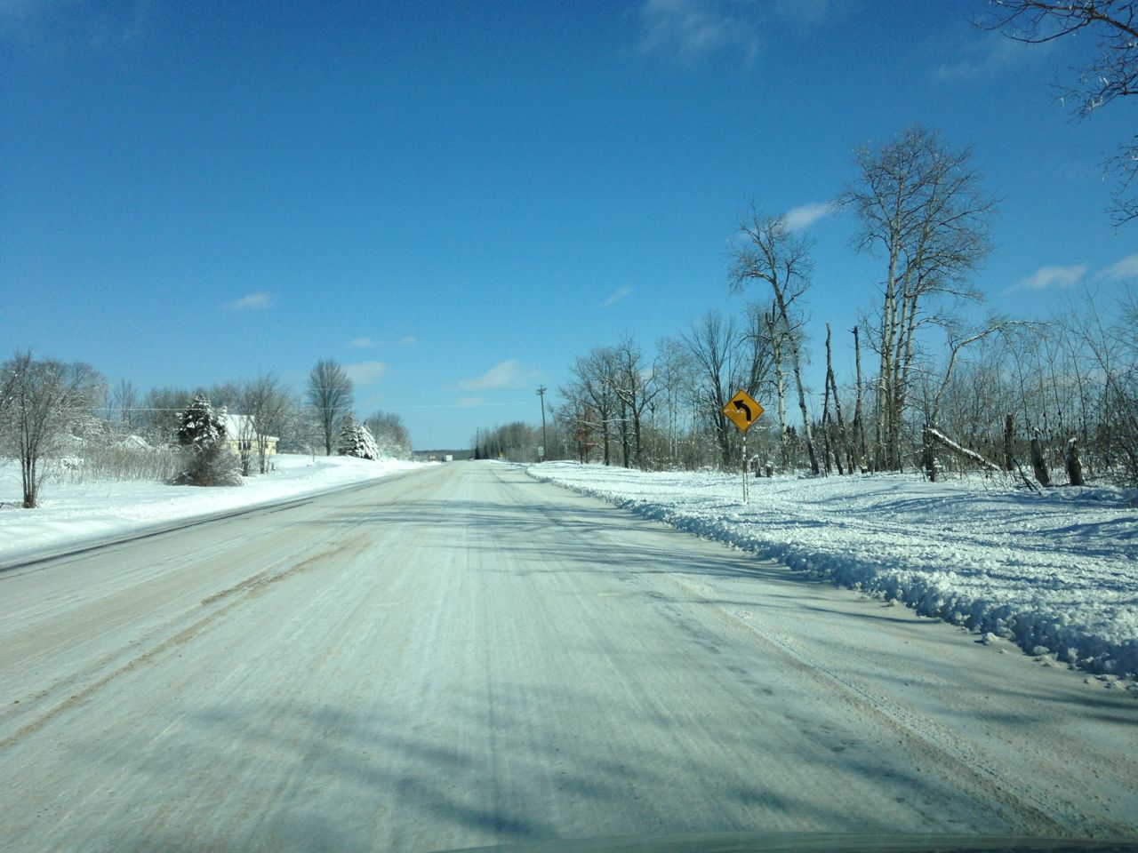 The road was entirely ice, but it had frozen hard to the concrete and the extreme cold made it nice and hard. So in the end, it wasn’t too bad to drive on. The minimal traffic also helped. Only ran across one foolish person who was in a hurry and needed to pass everyone. Seriously.