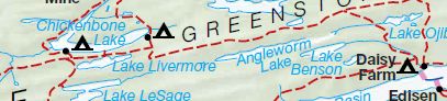 Found a nice shaded clearing off the trail a little after 11 and decided to have a break and early lunch.  Finally go back on the trail around noon.  This was one of my near 8 mile days and I have been taking it fairly slow as there’s really no rush.  By 3 in the afternoon (Central Time) I hadn’t seen another soul on the trail.  I had stopped momentarily to have a sip of water and from behind me I heard “How’s it goin?” – scared the crap out of me!  The guy was also on his way to W. Chickenbone but had left Lake Desor this morning about the same time I had left Hatchet Lake.  He’d covered about 14 miles in the time I’d done 7 – man I’m slow…