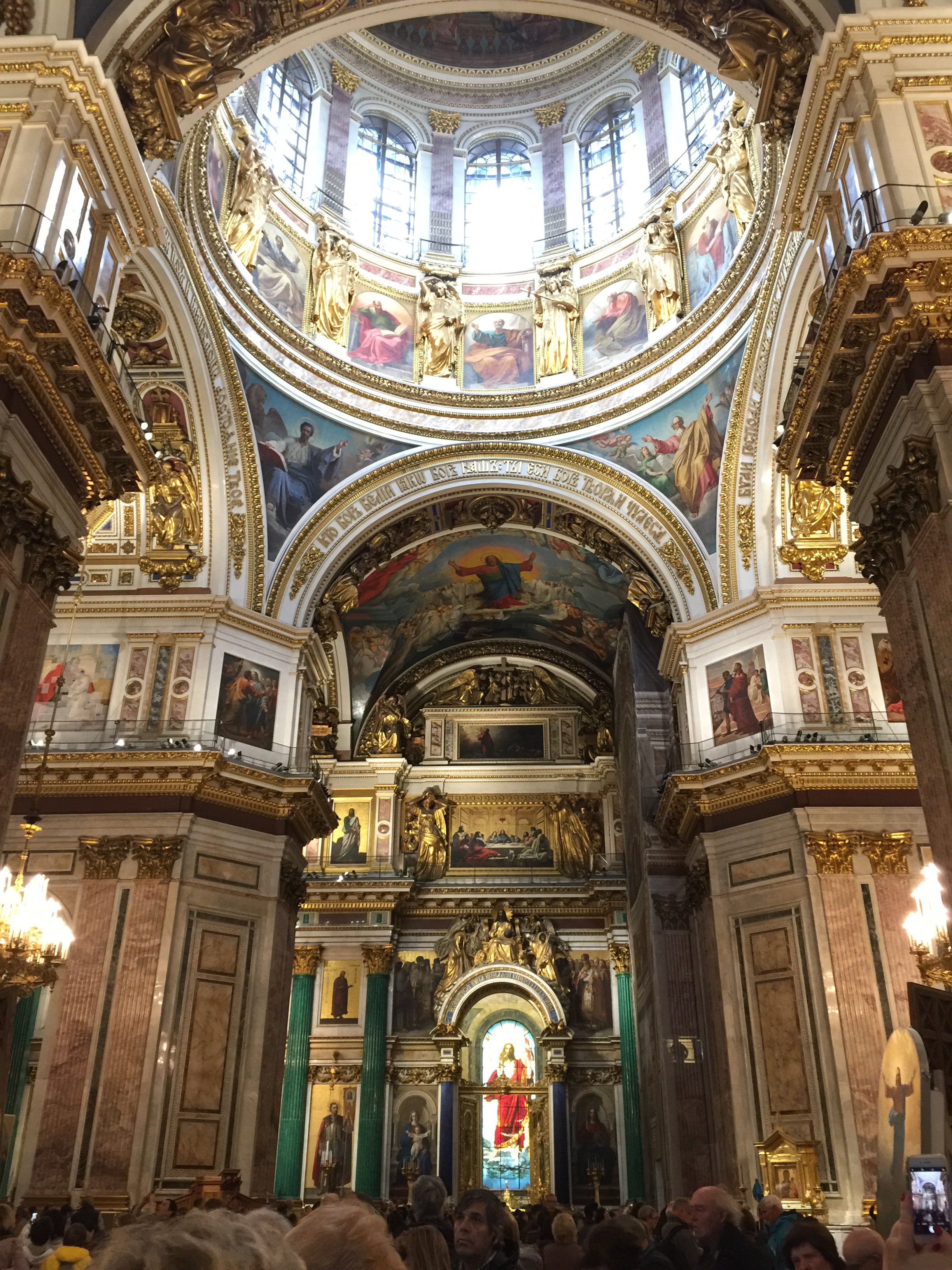 We boarded the bus at 9 for our last day in St Petersburg. It was nearly an hour drive back to the city. We stopped for one photo op at Smolny convent and then on to the Hermitage. We spent about 2 hours on a tour and were then out the door at 12:30. Like the Smithsonian one could spend days looking at all of the artwork. It’s an amazing place but simply too much to absorb in so short a time with thousands of other people. Then it was off to lunch at a local restaurant. The rain had started by this time so the afternoon looked pretty bleak.